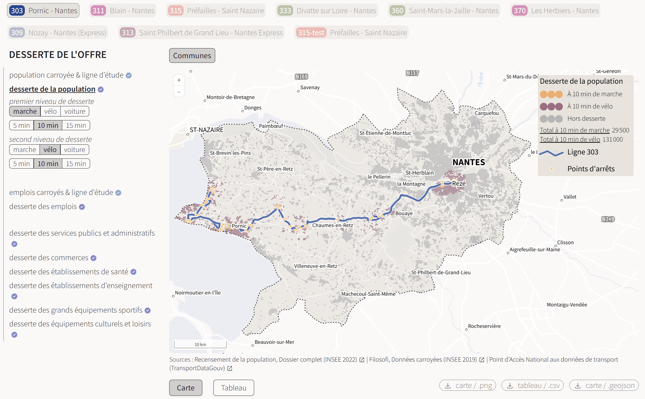 Les analyses incontournables sont proposées - parts modales, usages, flux, ... - mais aussi des analyses inédites.