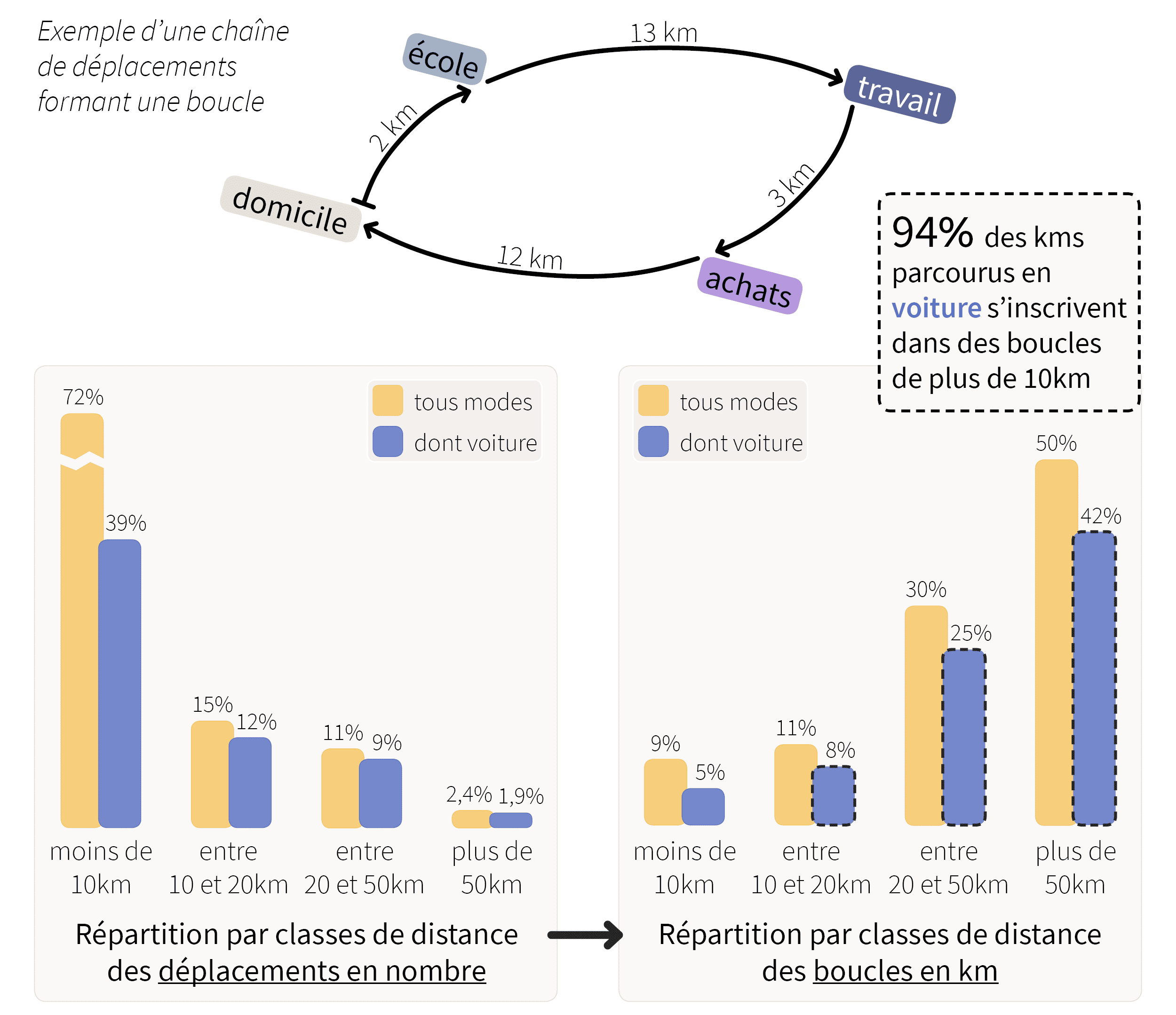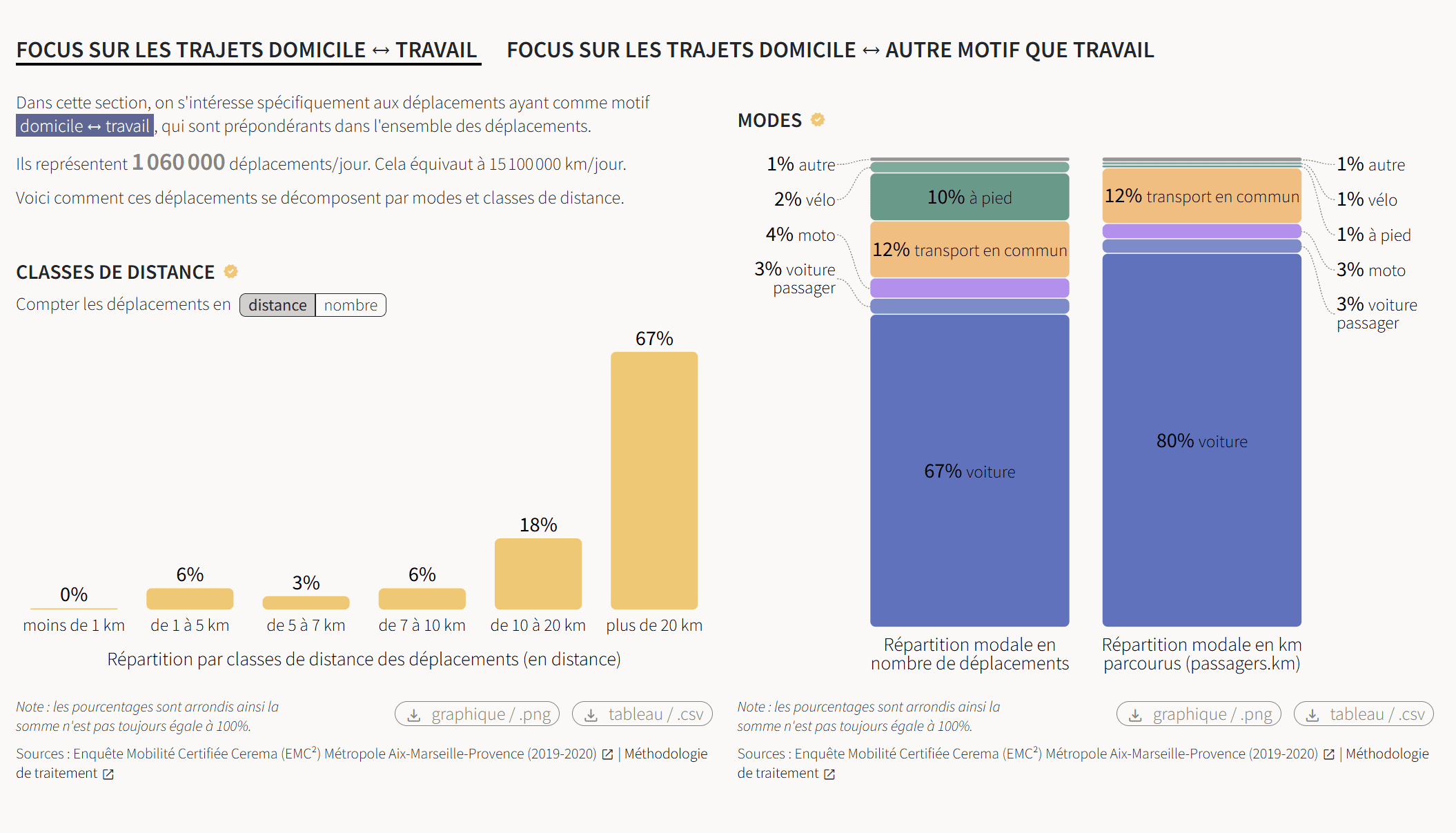 Les analyses incontournables sont proposées - parts modales, usages, flux, ... - mais aussi des analyses inédites.